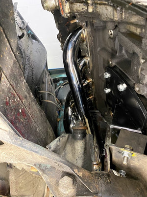 Custom designed 4-1 header to fit an M42 swap in a 2002. The stock M42 header will NOT fit in a 2002 without modification. This header is almost equal length and comes with the matching vband flange and clamp.